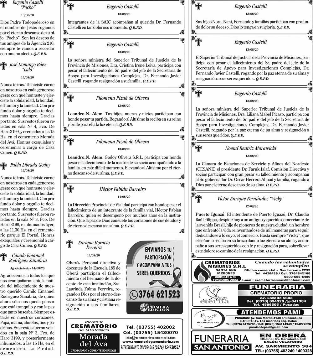 Tags: Fúnebres 15-08-2020