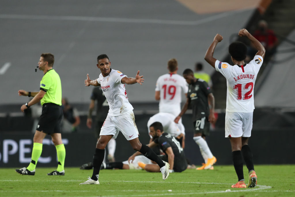 El equipo sevillano dio vuelta el resultado con los goles del español Suso y el neerlandés Luuk de Jong, mientras que el portugués Bruno Fernandes, de penal, puso en ventaja al conjunto inglés.