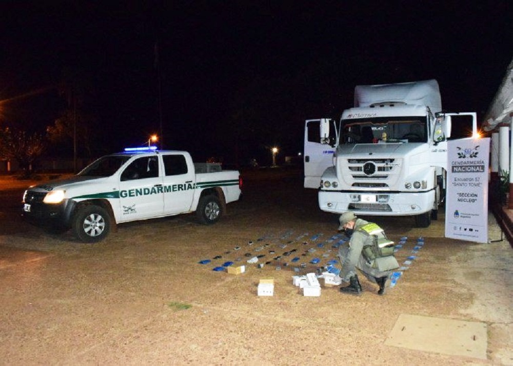 Este lunes personal de Gendarmería Nacional e integrantes del Escuadrón 57 “Santo Tomé” (Corrientes), desplegados sobre el kilómetro 669 de la Ruta Nacional 14, detuvieron un transporte de carga con semirremolque ocupado por dos hombres de nacionalidad argentina que circulaban desde Misiones con destino final la ciudad de Rosario (Santa Fe).