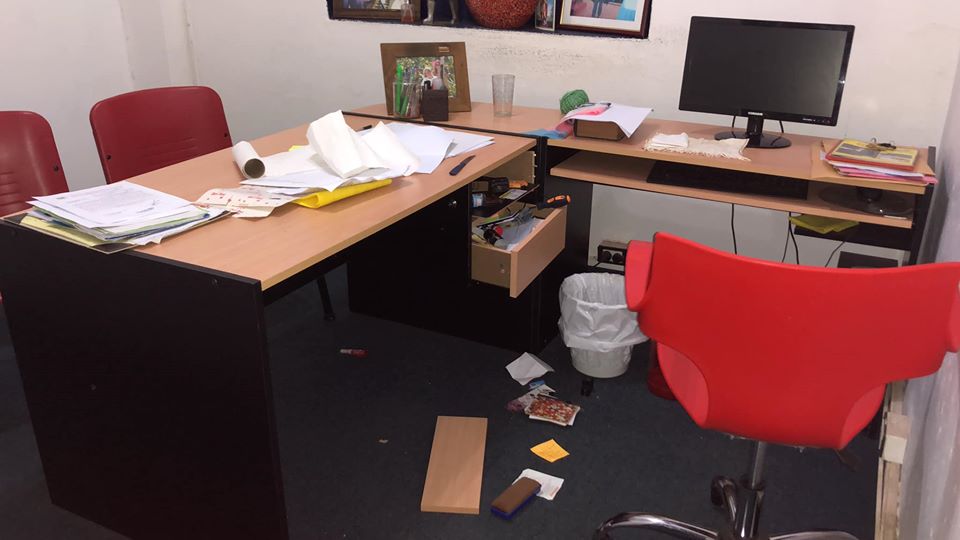 “No fue un robo porque no se llevaron nada de valor. De hecho, en mi escritorio, que es el que rompieron y me dejaron un cuchillo, no robaron el dinero que tenía adentro, no falta nada. Entraron y revolvieron los expedientes, no puedo saber si falta alguno, pero de nada les sirve porque están todos digitalizados”, precisó Risko.