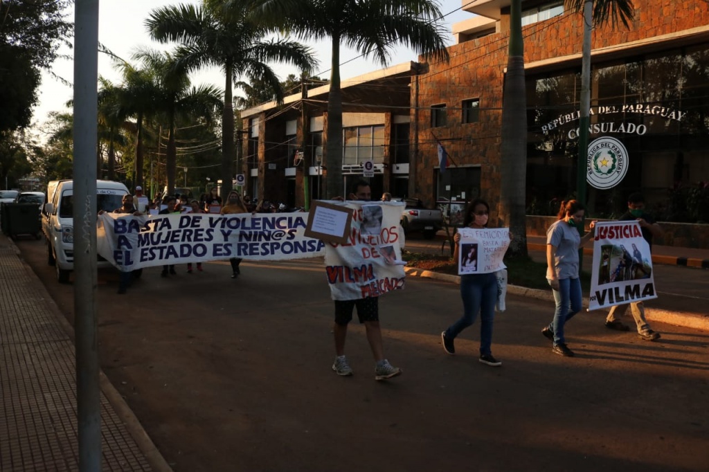 Este lunes por la tarde, familiares y allegados a Vilma Mercado, la joven que fue brutalmente asesinada en octubre del año pasado, volvieron a marchar por las calles de Puerto Iguazú para exigir justicia y para que la causa sea elevada a juicio. La convocatoria fue en el Paseo de la Identidad, donde se juntaron muchas personas, en su mayoría jóvenes. Allí se armó un cartel enorme, donde se escribieron los nombres de todas las mujeres que fueron asesinadas en Iguazú, desde hace 50 años atrás en adelante, hasta Patricia Mereles.