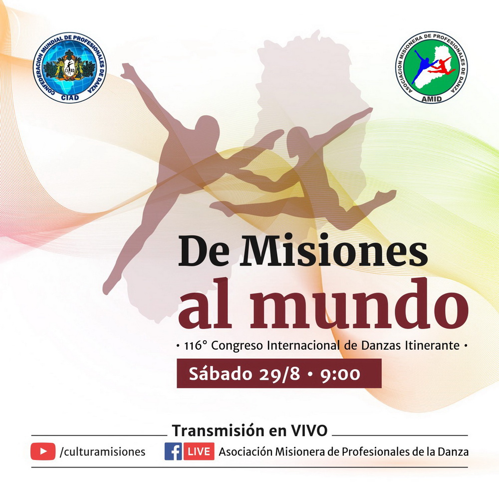 El Congreso Internacional de Danzas es una propuesta que este año tiene a Misiones como sede. Está organizado desde la Asociación Misionera de Profesionales de Danza y cuenta con el apoyo técnico de la Secretaría de Cultura de la Provincia. Asimismo, fue declarado “de interés provincial”, por la Cámara de Representantes, de la mano de la diputada Yamila Ruiz. La comisión directiva de la Asociación Misionera de Danza está presidida por Romina Maluf, con Ursula Martens como vicepresidente, María Elena Markendorf como secretaria y Luis Stivala como tesorero.