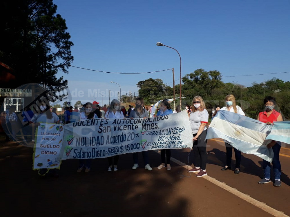 Desde las 9 de la mañana, aproximadamente 150 docentes autoconvocados de San Vicente realizaron el corte de la Ruta Nacional 14 a la altura del km 975. “Vamos a estar acá hasta el mediodía y en minutos nomás vamos a arrancar la asamblea”, dijo a PRIMERA EDICIÓN el docente Rubén Vallejos quien contó que tuvieron que retrasarla por problemas técnicos.
