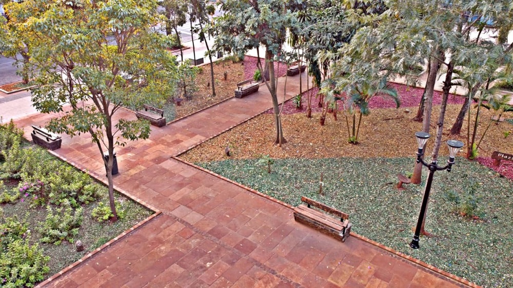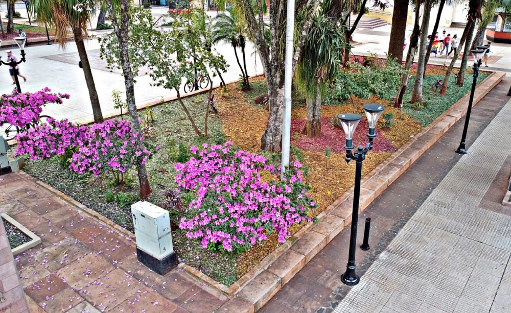 La Plaza 9 de Julio es un lugar icónico de la capital provincial, por ello el embellecimiento en este histórico punto de encuentro y esparcimiento capitalino se está llevando a través de la colocación de chips de colores, desde la Municipalidad de Posadas.