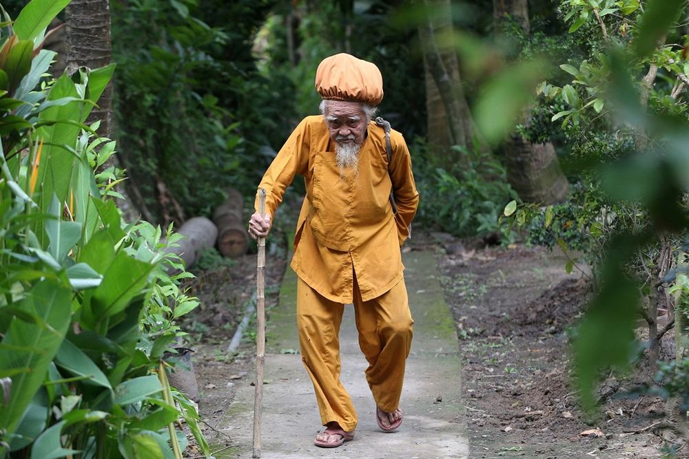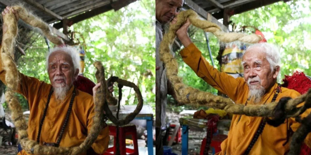 El hombre de 92 años de la región sur del delta del Mekong es el orgulloso propietario de rastas de cinco metros de largo, debido a su creencia en una fe que prescribe dejar intacto aquello con lo que nace una persona.
