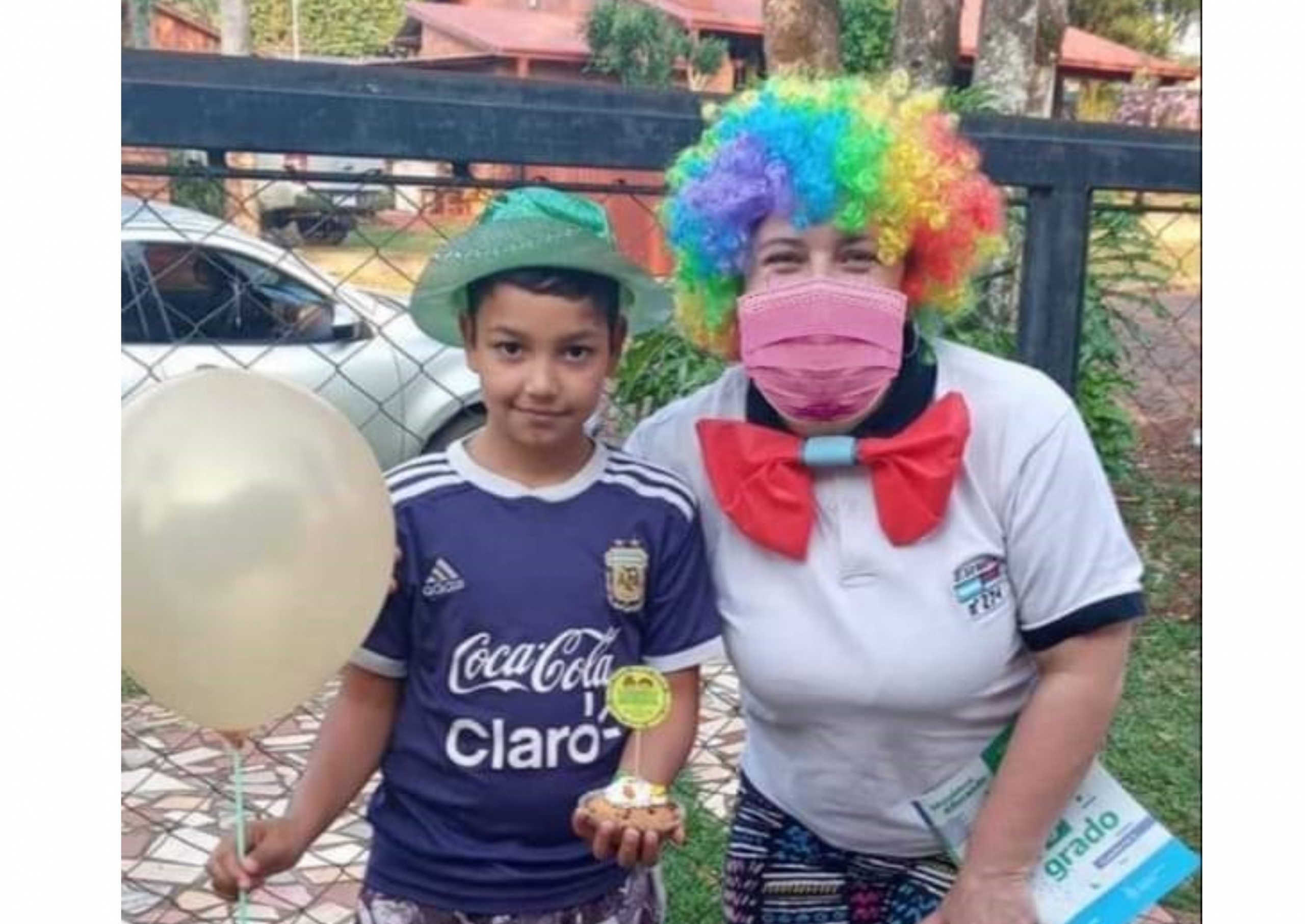 Durante agosto, en conmemoración por el mes del niño, fue casa por casa vestida de payasa, repartiendo los cuadernillos de actividades junto a regalitos hechos por ella. “Quería hacer algo diferente, porque me imaginé que los iba a sorprender ver a su maestra vestida de payasa”, contó Sonia a PRIMERA EDICIÓN entre risas.