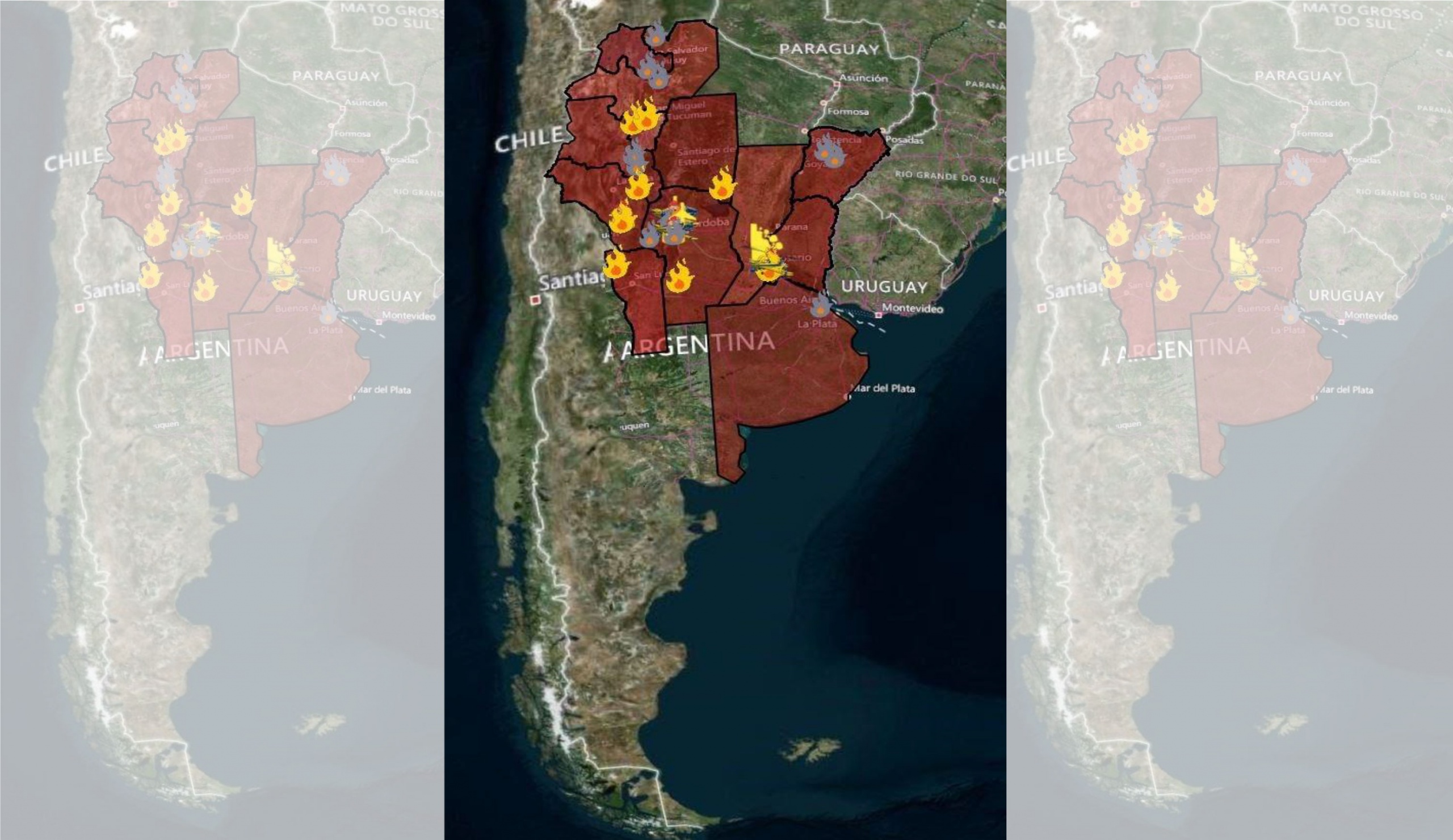 De acuerdo al reporte, el fuego todavía se presenta activo en los focos de las localidades de Los Toldos (Salta), Bajo de Veliz Quines (San Luis), y El Arquito y Tama (ambas de La Rioja).