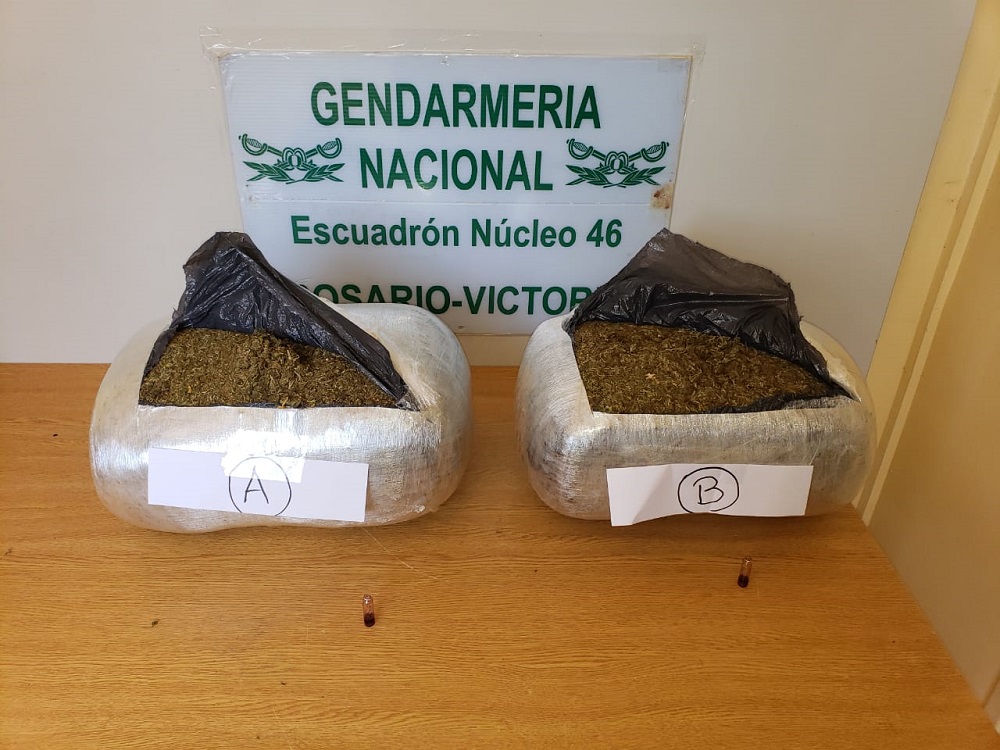 Durante el registro, los uniformados extrajeron dos bultos envueltos en nylon y cinta de embalar que contenían en el interior una sustancia vegetal con características similares a la de la marihuana.