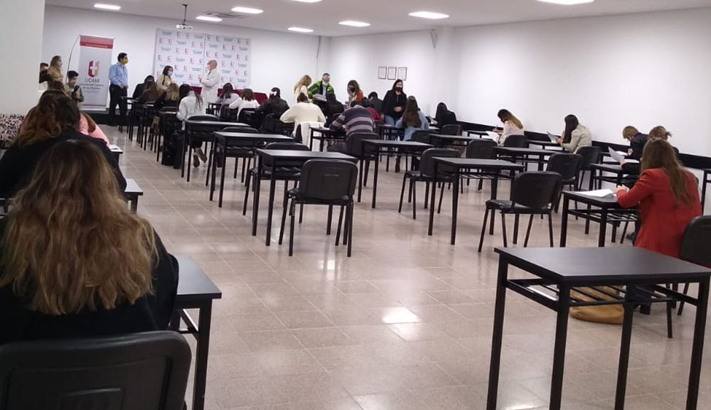 El examen presencial fue en la sede de la Universidad Católica de las Misiones (UCAMI) a las 9 de la mañana. Allí, “se cumplió con el distanciamiento obligatorio y antes del ingreso a la universidad, se tomó la temperatura a cada uno”, explicó a PRIMERA EDICIÓN el director de Recursos Humanos del Ministerio de Salud Pública de Misiones, Dr. Javier Fernando Daniel Mattivi.