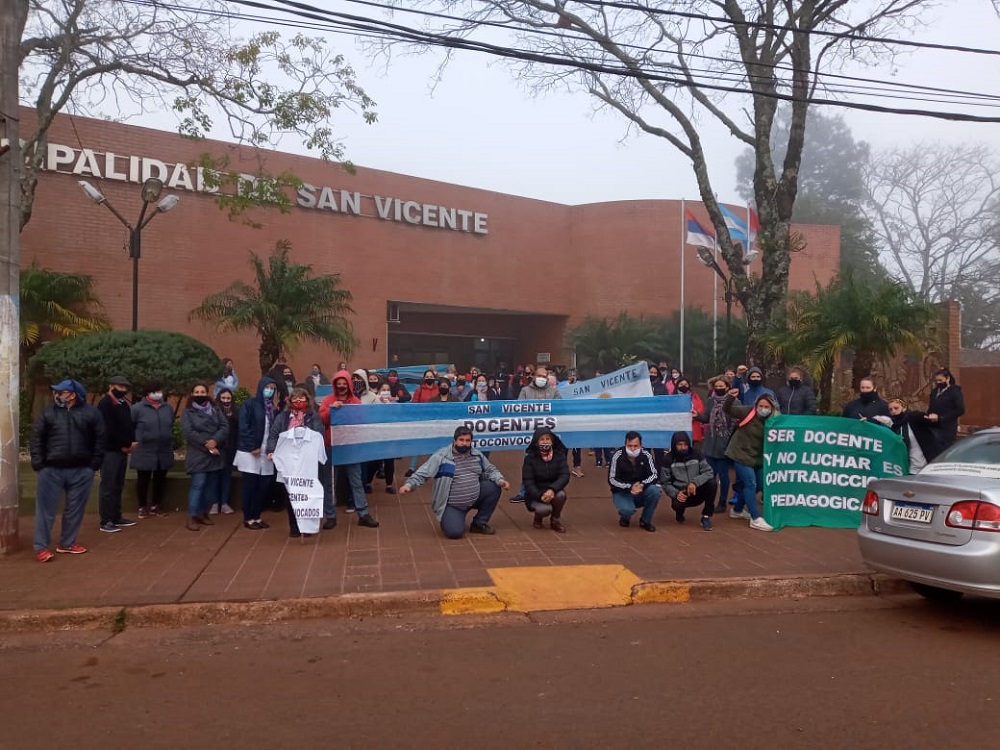 Como PRIMERA EDICIÓN adelantó ayer, educadores de San Vicente hoy cerca de las 6 horas, comenzaron el acampe. La movida había surgido en primera instancia con la idea de una toma de la Municipalidad, pero luego los autoconvocados entregaron un petitorio al intendente de esta localidad y decidieron realizar un acampe frente a la municipalidad.
