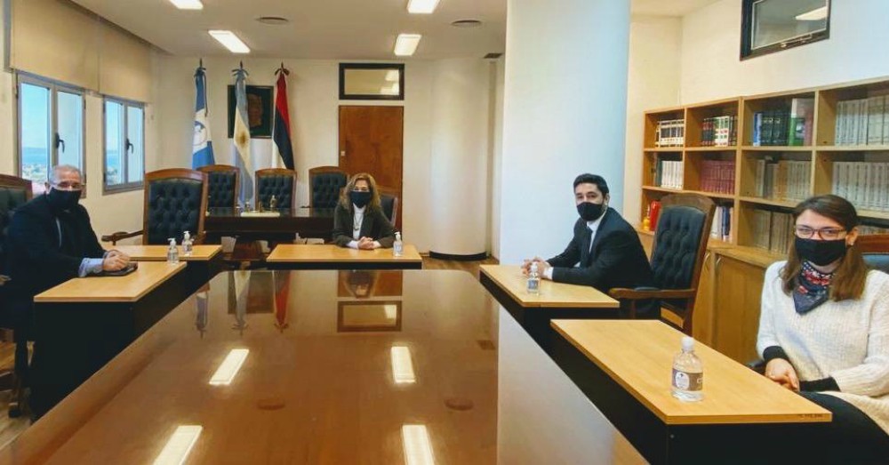La presidenta del Superior Tribunal de Justicia de la Provincia de Misiones, Rossanna Pía Venchiarutti Sartori recibió al vicepresidente 1° de la Asociación de Magistrados y Funcionarios, Carlos Jorge Giménez junto a Gabriela Kisi Courrege, y al secretario general de la Unión Judicial de Misiones, Osvaldo Sánchez.