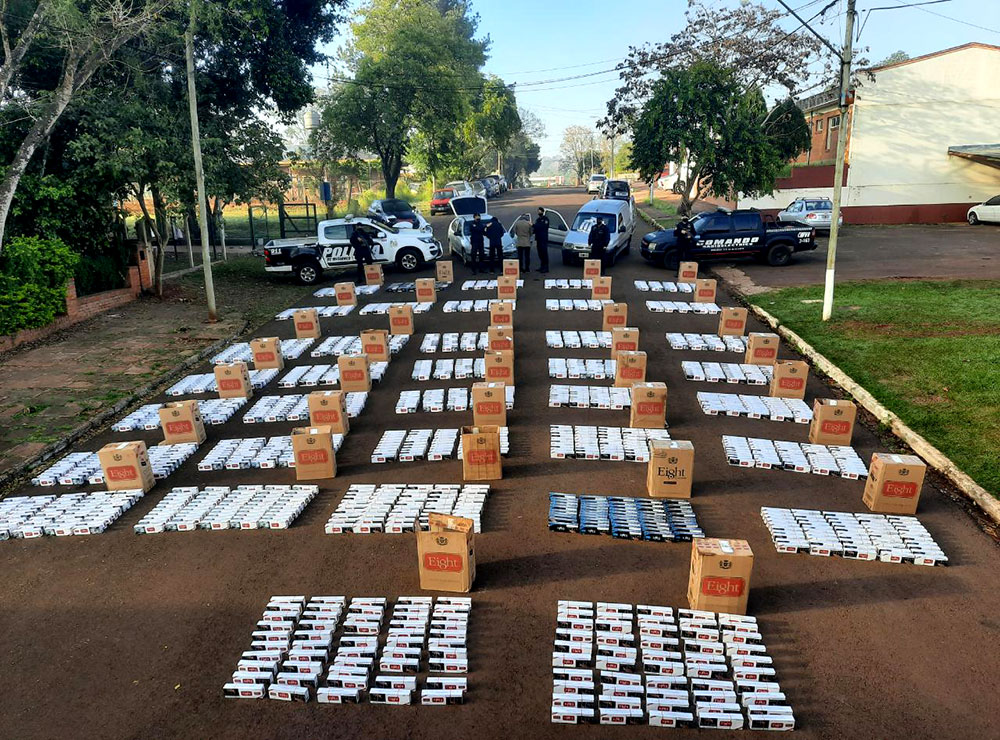 Con orden del Juzgado Federal de Oberá se procedió al allanamiento de la casa del barrio Los Paraísos donde se incautaron otras 13 cajas de cigarrillos y detuvieron a un joven de 25 años. En el baldío también se secuestraron 10 bultos más, arrojando un total de 1875 gruesas que estaban distribuidas en 37 cajas.