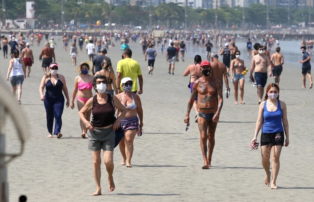 Ayer sábado, en el primer día de un feriado prolongado, las playas brasileñas de la costa de São Paulo y Río de Janeiro tuvieron este sábado sol, aglomeraciones e irregularidades. Los bañistas ignoraron la prohibición de permanecer en la arena debido a la nueva pandemia de coronavirus.