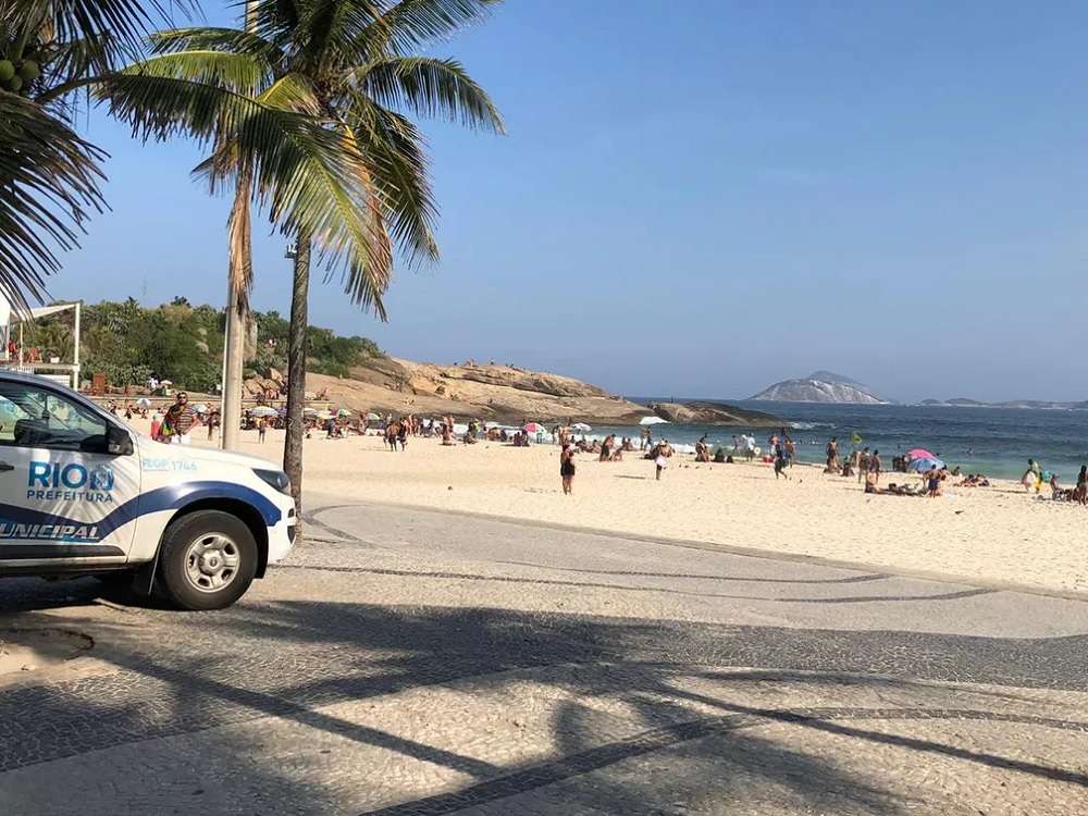 En la playa de Ipanema, en la zona sur de Río de Janeiro, UOL captó a cinco inspectores en la acera frente a la playa, donde los bañistas permanecían irregularmente en la arena. También había venta de bebidas alcohólicas, que todavía está prohibida en la ciudad.