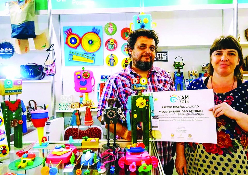 Liliana es diseñadora gráfica y Marcelo electricista, “hace siete años dejé mi trabajo en una imprenta y nos pusimos a pensar qué podíamos hacer. Mi marido sabe de carpintería y herrería también con hierros reciclados te hace una parrilla, por ejemplo, entonces decidimos fusionar nuestros conocimientos y crear algo distinto. Nuestro emprendimiento tiene todo que ver con el arte y con la concientización, hacemos reciclado de madera, pallet y todo tipo de juguetes de plástico, retiramos del Hospital de Juguetes los desechos, las partes rotas, sueltas, y con esto decoramos nuestros juguetes, partes movibles y le hacemos brazos, boca, partes así, entre la madera pintada de colores, más los pedazos de juguetes, le da un diseño único al producto que hacemos, reciclamos el material, es materia prima para nuestro trabajo. También hay mucha gente que nos trae muchos materiales a nuestro taller, hay cosas que utilizamos y otras que no, la idea de reciclar, también tiene un objetivo de crear conciencia de lo que consumimos y ser más responsables, nosotros recibimos muchas cosas en nuestro taller, pero no podemos hacernos cargo de todo, así que reciclamos lo que necesitamos y debemos tirar lo demás, por eso también nuestro emprendimiento tiene que ver con la concientización sobre el reciclado, pero fundamentalmente en ser responsables de lo que consumimos”, contó Liliana a PRIMERA EDICIÓN.