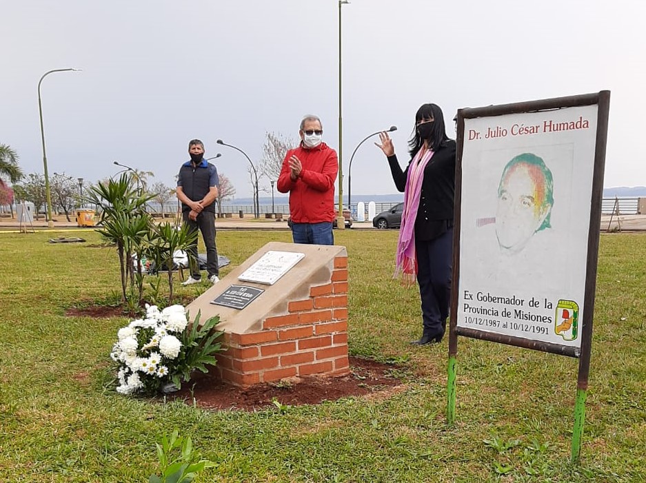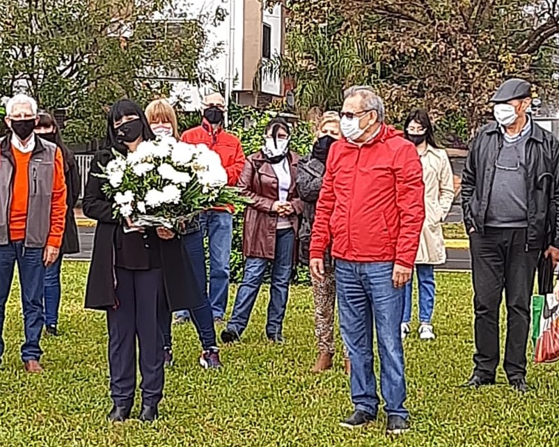 En la plazoleta Julio Humada de la costanera posadeña participó un grupo de militantes, bajo los protocolos de seguridad sanitaria por la pandemia, en la colocación de una ofrenda floral.