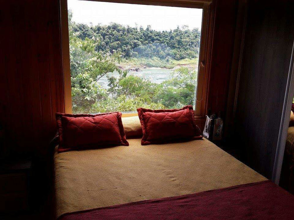 El predio se encuentra a tres kilómetros de centro de Puerto Iguazú, y las cabañas tienen vista al río Paraná. Al llegar allí, los visitantes podrán disfrutar de un lugar tranquilo, rodeado de abundante vegetación, y apreciar la selva nativa del hermano país de Paraguay.
