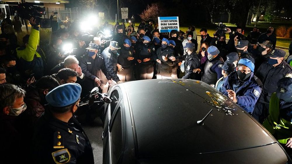Sus abogados siguieron el mismo camino. Cuando los vecinos los reconocieron, impidieron el ingreso al country. La policía intentó correrlos pero no lo logró hacer. Finalmente, los letrados también tuvieron que dar marcha atrás y retirarse.