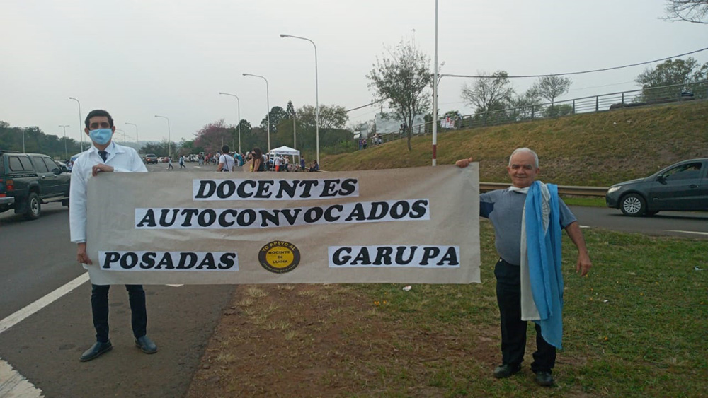 Este viernes desde muy temprano, docentes de toda la provincia comenzaron a llegar a Garupá, en la rotonda de acceso a la ciudad, y minutos después de las 9 iniciaron el corte en la ruta 12, a la altura del puente homónimo a la localidad. Allí, continuarán con la lucha salarial a la vez que desarrollarán un acto en conmemoración al Día del Maestro.