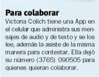 Como mensaje Vicky sólo expresó que “todo lo que la gente sienta y pueda colaborar será bienvenido, incluso si quiere comprar alfajores que yo pueda vender”, pidió.
