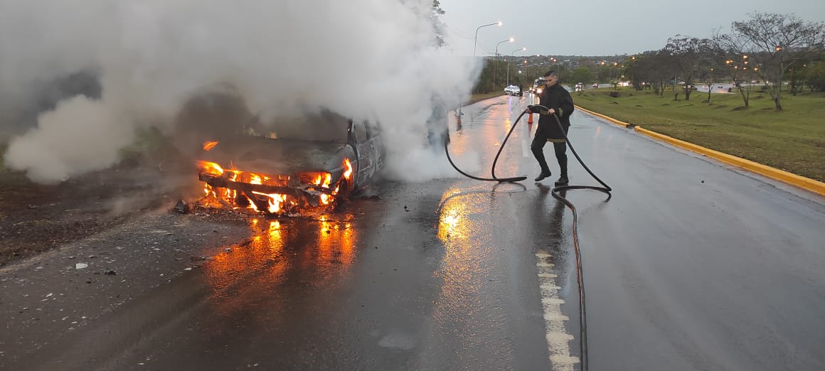 Un vehículo se prendió fuego esta mañana por la avenida Quaranta en la entrada del Acceso Oeste de Posadas.