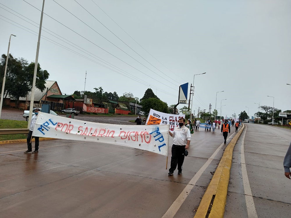 • Puerto Rico: una columna de docentes autoconvocados marchan desde las 9 horas desde Puerto Rico hasta Garuhapé por la ruta 12. Hora de llegada estimada 10.15 horas.