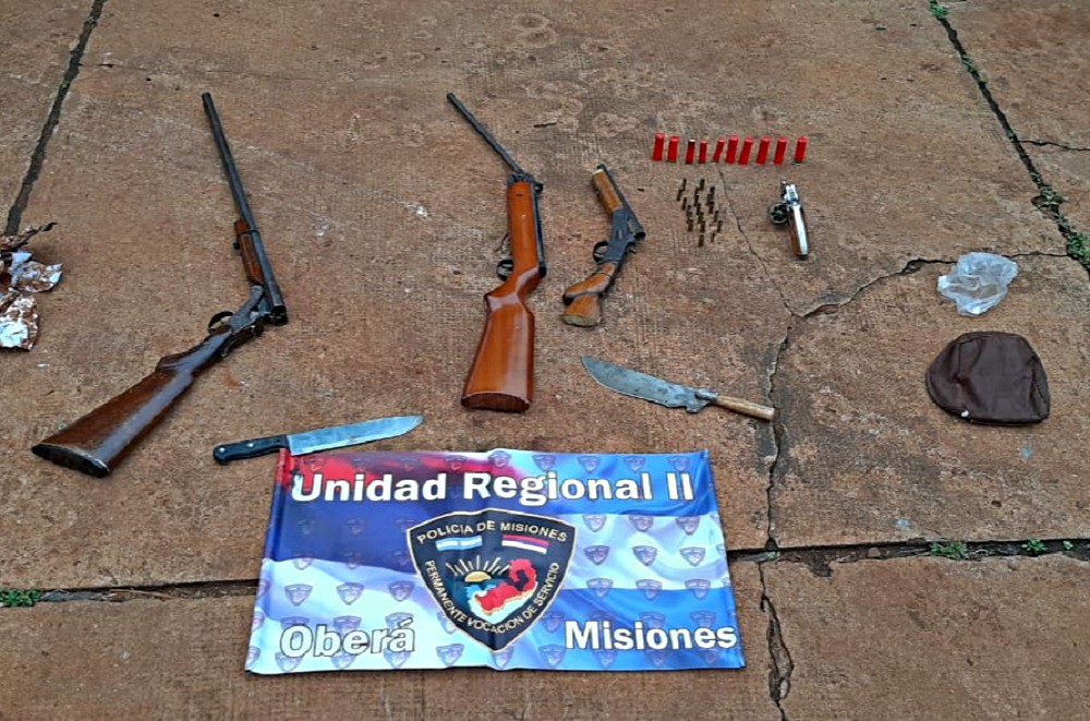 En los sitios allanados, se secuestraron un revólver calibre 32 cargado, una escopeta doble caño calibre 16, un rifle de aire comprimido calibre 22, una pistola de fabricación casera, cartuchos de distintos calibres y vainas servidas.