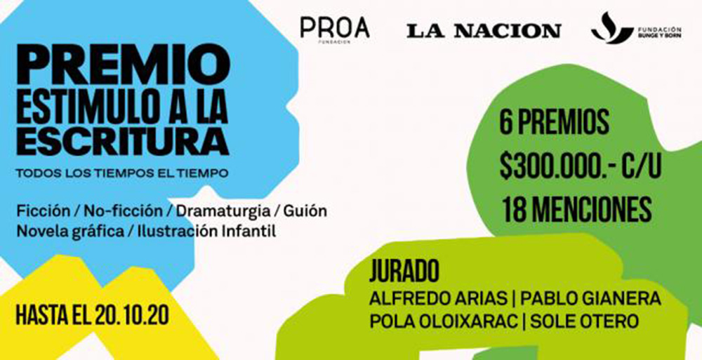 La Fundación Bunge y Born, la Fundación Proa y el Diario La Nación organizan el Premio Estímulo a la escritura “Todos los tiempos el tiempo”. El objetivo del concurso es brindar apoyo a la comunidad artística y cultural, para la cual, el contexto de crisis actual presenta grandes desafíos.