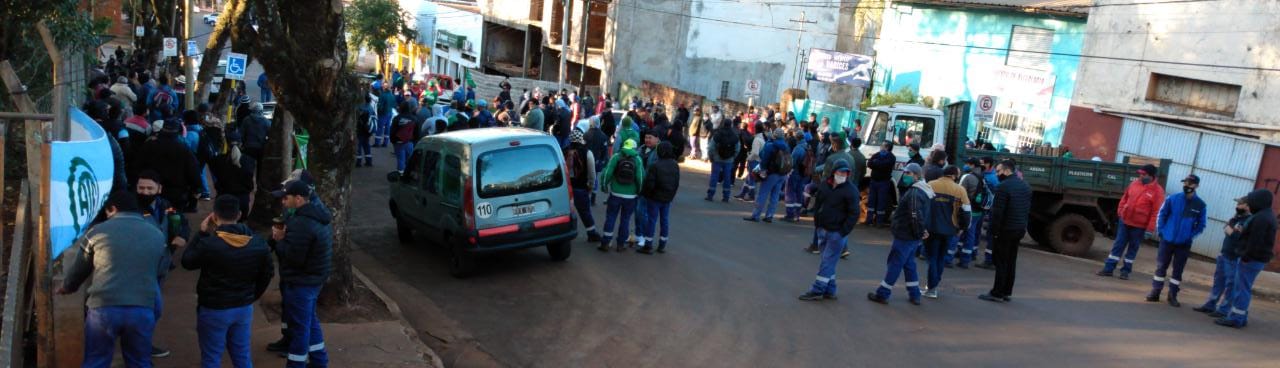 Empleado municipales de Oberá y realizan una protesta que comenzó esta mañana desde la avenida José Ingenieros en el Corralón Municipal hacia la Municipalidad local.