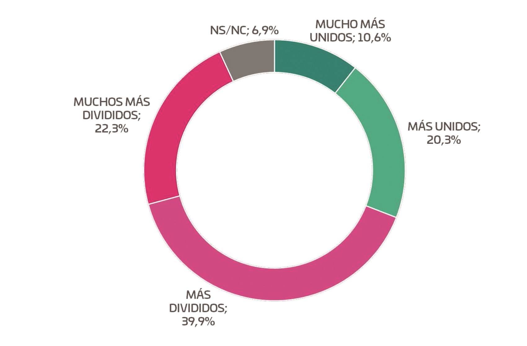 Solamente el 30,9% considera que estamos mucho más unidos o más unidos que antes de la pandemia, que es cuando se introdujo el lema. Un 62% considera que estamos mucho más o más desunidos. Hay un desfasaje entre la propuesta del Gobierno de construir consensos y la percepción de la realidad que tiene la gente, por lo tanto deberá hacer una construcción política diferente para sostener esa intención de mensaje”.