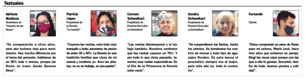 Ayer, un día tradicionalmente muy intenso por el inicio de la primavera, el movimiento comercial fue “casi nulo, hubo muy poca venta. En esta época muchos deciden casarse y los pronósticos para nosotros siempre eran los mejores, pero este año nada, la florería está vacía”, remarcó Sandra.
