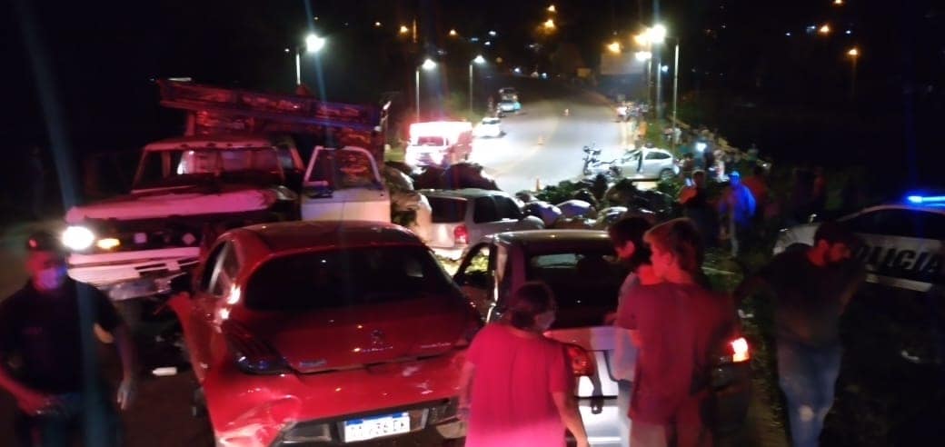Un siniestro vial que ocurrió anoche en esta ciudad, dejó como saldo varios vehículos chocados y al menos 12 personas que resultaron heridas. Ocurrió en inmediaciones del puente del arroyo Mbotaby ubicado sobre la avenida José Ingenieros.