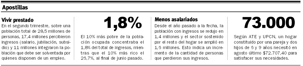 La brecha entre el 10% más rico y el 10% más pobre se amplió del 20 a 25 respecto al mismo período del año pasado. Esto es así porque el coeficiente de Gini por miembro de familia pasó de 0,434 a 0,451.