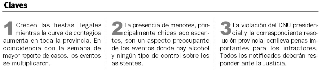 El encargado y propietario del inmueble fue identificado como quien organizó el encuentro. Posteriormente y ya suspendida la fiesta, el encargado fue notificado de la causa y se labró el acta y tomó intervención la Justicia.