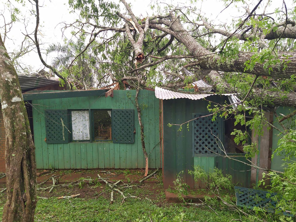 En tanto, en Picada Pomar (municipio de Dos de Mayo) se registraron caídas de árboles y de un galpón, cuya construcción se encontraba en cercanías a la Escuela 558, así como también de algunos postes.