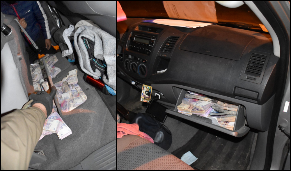 Al momento de la requisa del rodado, los efectivos de la Sección Vial “Paso de los Libres” observaron a simple vista que en el interior de la guantera, debajo de los asientos traseros y sobre el piso del mismo, había varios fajos de billetes de diferente denominación sin la documentación que avale su tenencia y traslado.