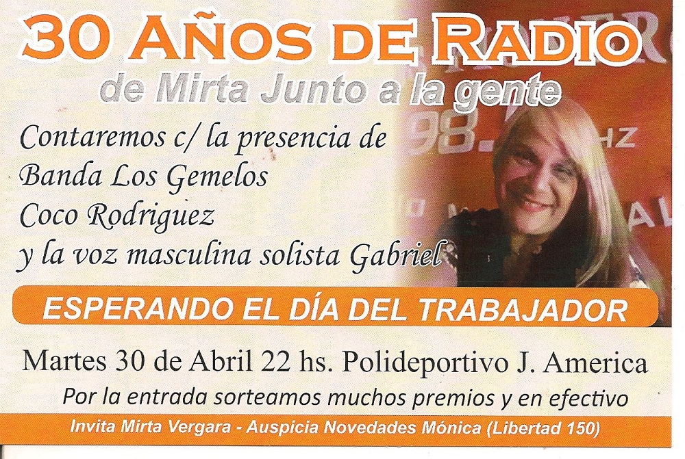 Durante todos estos años, “traje a muchos grupos musicales importantes con la colaboración de toda la audiencia, de los auspiciantes, de mi familia, mi hija Laura Adriana Vergara y mi hijo Luciano Leonel Pereira”.