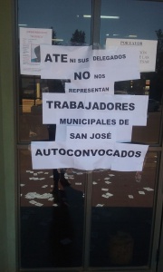 Este lunes la Municipalidad de San José amaneció con carteles pegados en puertas y volantes arrojados en la vereda, con autoría de un “supuesto colectivo de municipales autoconvocados” que dicen no ser representados por los gremios con presencia en el municipio (ATE y UPCN), manifestaron desde el sindicato.
