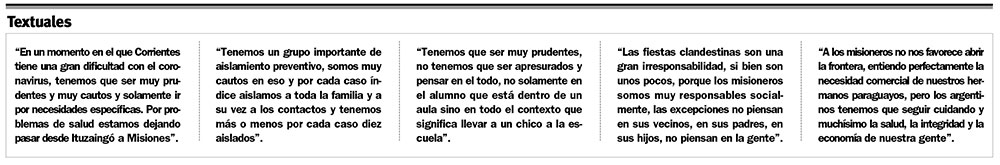 Respecto a los casos hasta ahora, Alarcón indicó que “lo importante es saber que la mayoría son contactos de los casos índices en cada lugar en que se produjo uno: Iguazú, Posadas o Aristóbulo. Los casos que dan el aumento a la cantidad son o familiares o contactos estrechos de los casos. Eso es importante también conocer para saber que el aumento de la cantidad de casos se debe también a que son contactos de los casos que fueron testeados”.