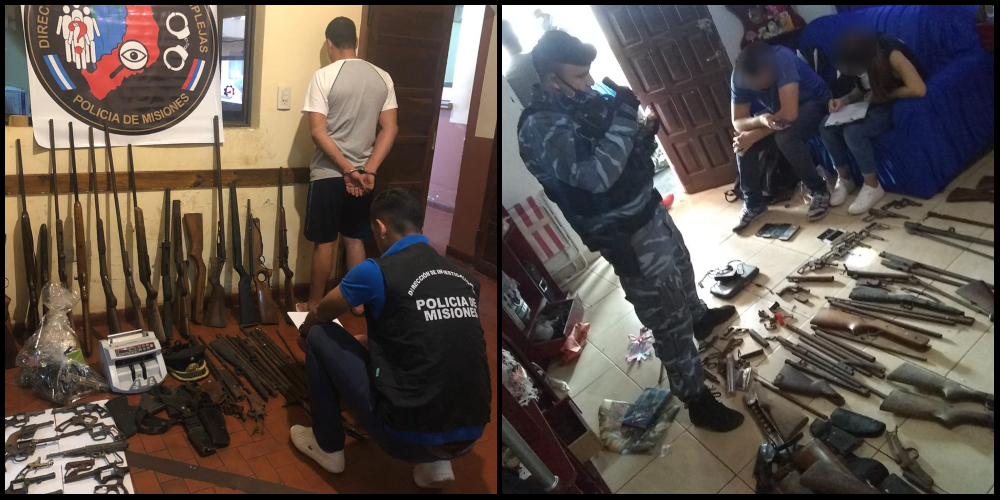 Los investigadores, con apoyo de sus pares de Infantería, allanaron una vivienda ubicada sobre calle Ruiseñor y secuestraron 4 armas cortas de diferentes calibres, 6 escopetas de distintos calibres, dos rifles semiautomáticos carabinas, 1 rifle calibre 22, varios partes de armas cortas, cientos de proyectiles calibre 9, 22,38, 45 cartuchos de escopeta, menos 300 vainas servidas calibre 11, 25mm, además de estuches para armamentos, una contadora de billetes. En tanto, que la Dirección de Cibercrimen incautó teléfonos celulares e equipos informativos.