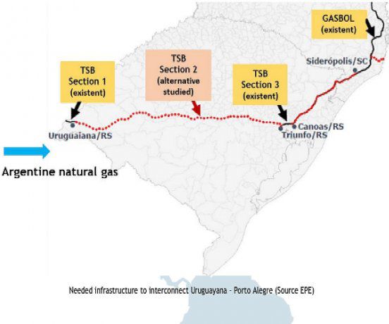 Según datos recopilados por Ámbito, el gasoducto tendría una trayecto de 2.400 kilómetros de extensión, incluidos algunos tramos ya en uso. Esa megaobra costará casi u$s5.000 millones y ya está en exploración de viabilidad. El plan inicial prevé el tendido de 1.430 kilómetros desde Neuquén hasta la frontera con Brasil, en Uruguayana, y otros 600 kilómetros desde allí hasta Porto Alegre, donde se conecta con la red de distribución de gas del sur brasileño. La conexión demandará mínimo tres años. La inversión rondará los u$s3.700 millones para Argentina y otros u$s1.200 millones para Brasil.