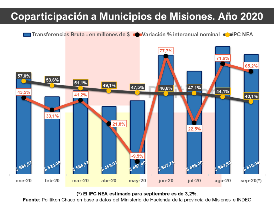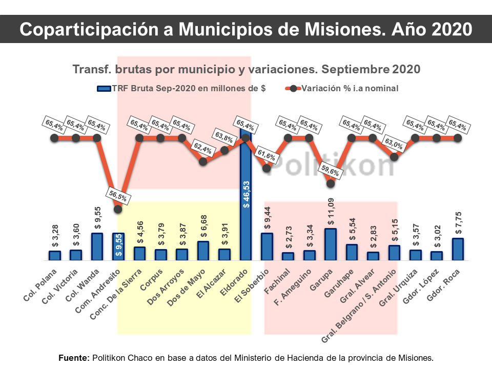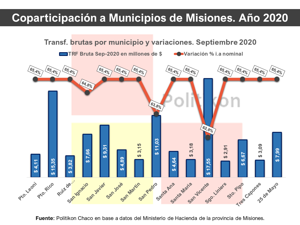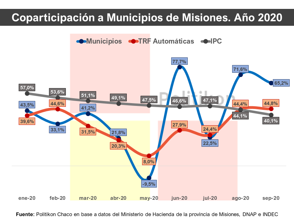 “La recuperación de los últimos dos meses de la coparticipación municipal va en línea con el alza real de los recursos por coparticipación federal que recibe Misiones”, explicó el director de Politikon Chaco, Alejandro Pegoraro, que recordó que, luego de haber tenido sistemáticas caídas en este punto, Misiones tuvo dos meses consecutivos de incrementos reales en agosto y septiembre.