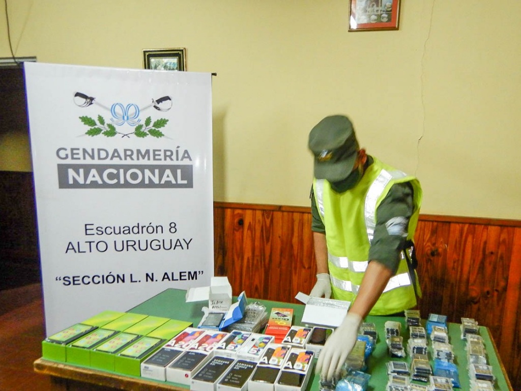 Pero los procedimientos continuaron mediante actuaciones del Escuadrón 8 “Alto Uruguay”, al controlar un vehículo observaron que dentro del tablero trasladaban mercadería de rubro electrónica, con 12 celulares de diferentes marcas y modelos, 228 baterías y 22 módulos por un importe cercano a los 860 mil pesos e intervino el Juzgado Federal y la Fiscalía Federal de Posadas, quienes orientaron el secuestro mercadería y vehículos.