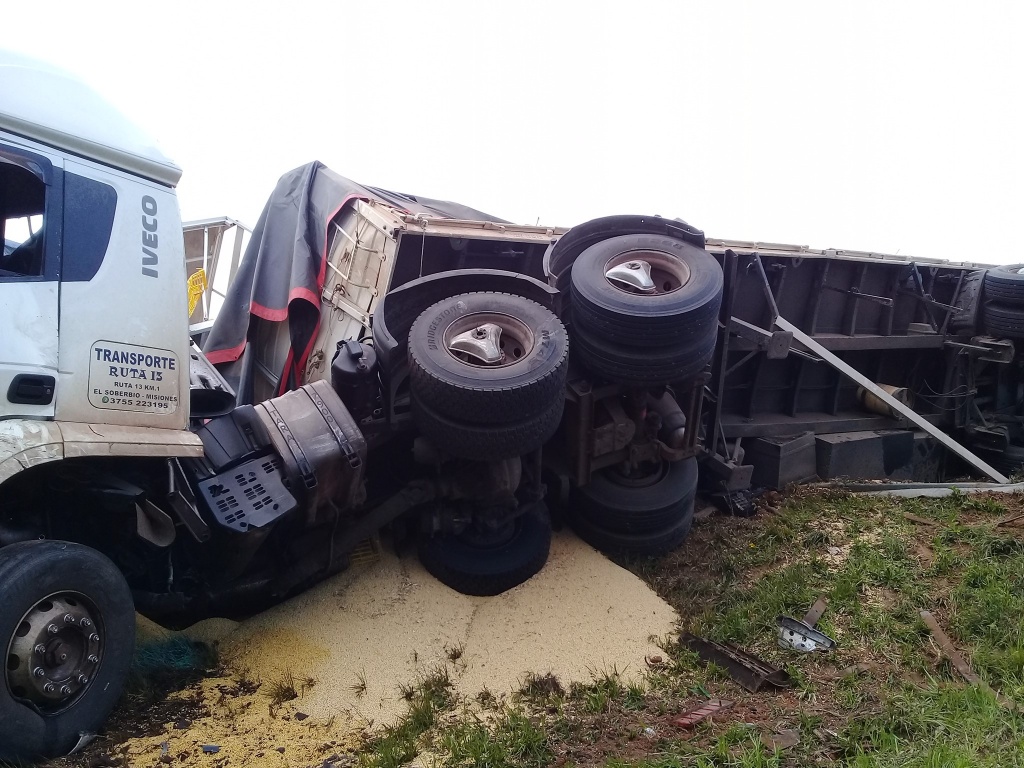 De los tres camiones que fueron parte del hecho, uno de ellos pertenece a la empresa misionera “Transporte Ruta 13” de El Soberbio, que llevaba soja y cuya carga terminó desparramada en todo el asfalto. De hecho, fue el que mayores daños tuvo por el hecho, según las imágenes compartidas por los periodista de LT21 AM 830 Radio Municipal de Alvear. Otro camión misionero que fue protagonista del siniestro llevaba maderas hacia Ramallo (Buenos Aires).