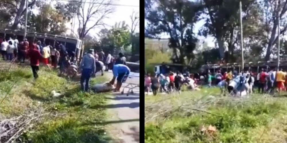 Un camión que transportaba entre 10 y 15 cerdos volcó este martes por la tarde en un barrio del partido de Pilar (Provincia de Buenos Aires) y un grupo de vecinos, tras percatarse de la situación, se acercó hasta el lugar del accidente para llevarse los animales en sus vehículos y carros de supermercado, en algunos casos después de haberlos degollado en el medio de la calle. Todo ocurrió a plena luz del día, cerca de las 15, y fue filmado por testigos.
