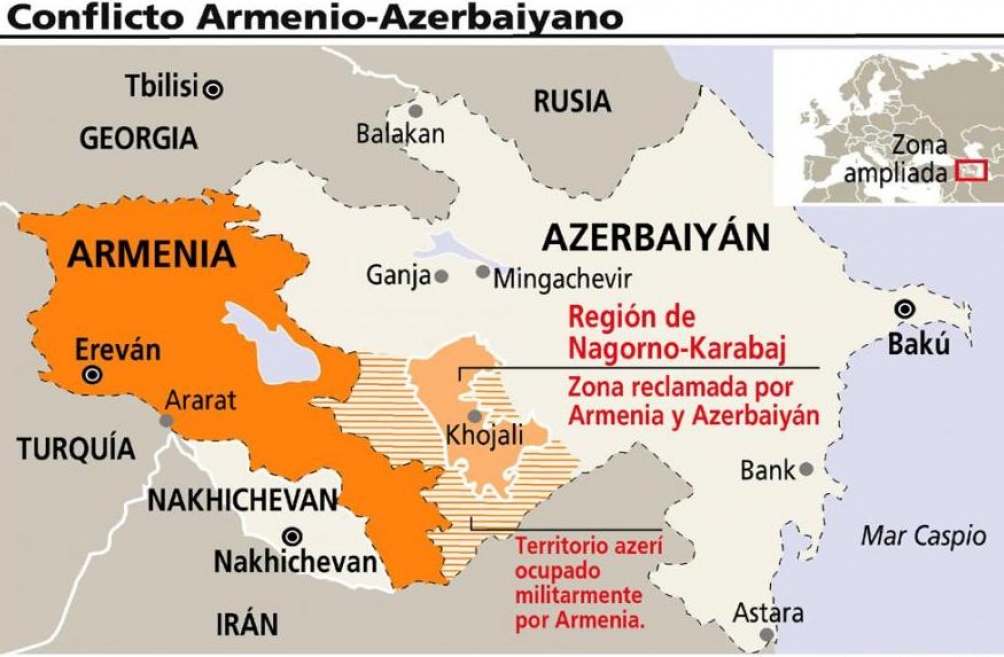 Poblado mayoritariamente por armenios, Nagorno-Karabaj es un enclave de 4.400 kilómetros cuadrados que en tiempos de la URSS pertenecía a Azerbaiyán.