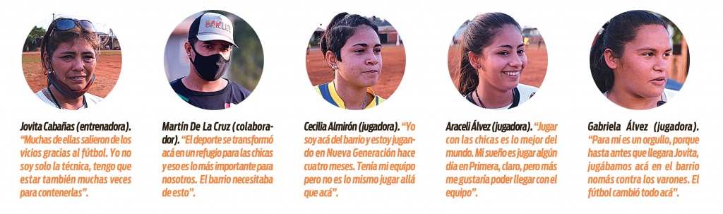 “Lo de Jovita es impresionante. Ella llegó acá, armó el club y tiene todo en regla. Hasta mandó a construir los baños que están al lado de la cancha del barrio. Las chicas vienen de todos lados. Y la quieren mucho, porque es muy contenedora. Si no está Jovita, el fútbol acá no empieza”, explicó De La Cruz con una sonrisa.