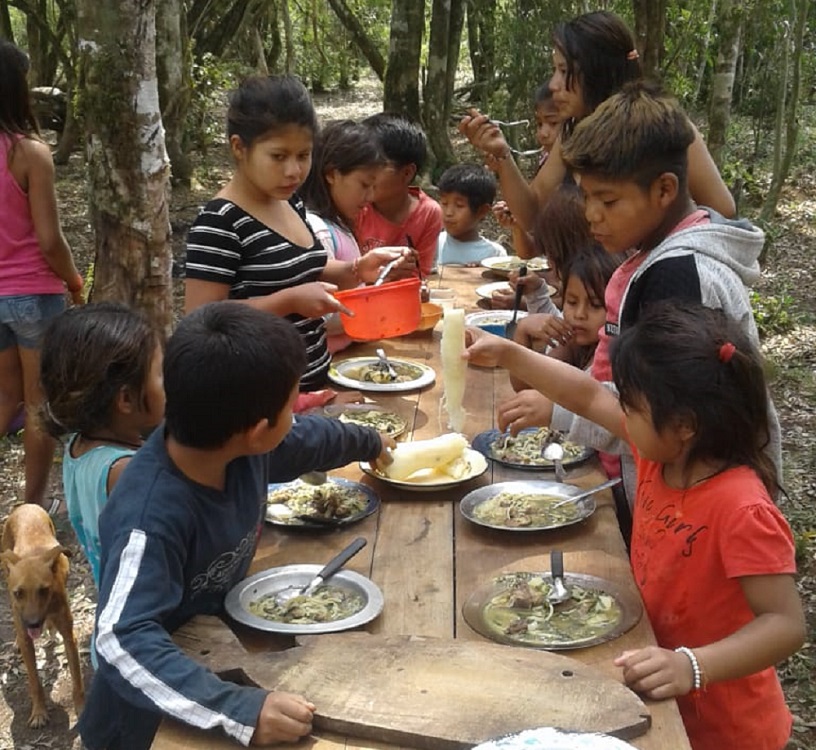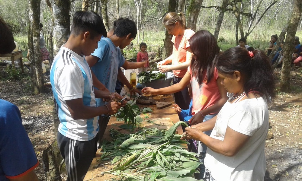 “Nunca había cocinado para muchas personas y además, los aldeanos se sumaban a los almuerzos y cenas. Como no tenía nada verde para agregar a las comidas, comencé a aplicar mis conocimientos. Iba junto a los chicos que me ayudaban en la cocina, juntaba plantas y las agregaba a las comidas”.