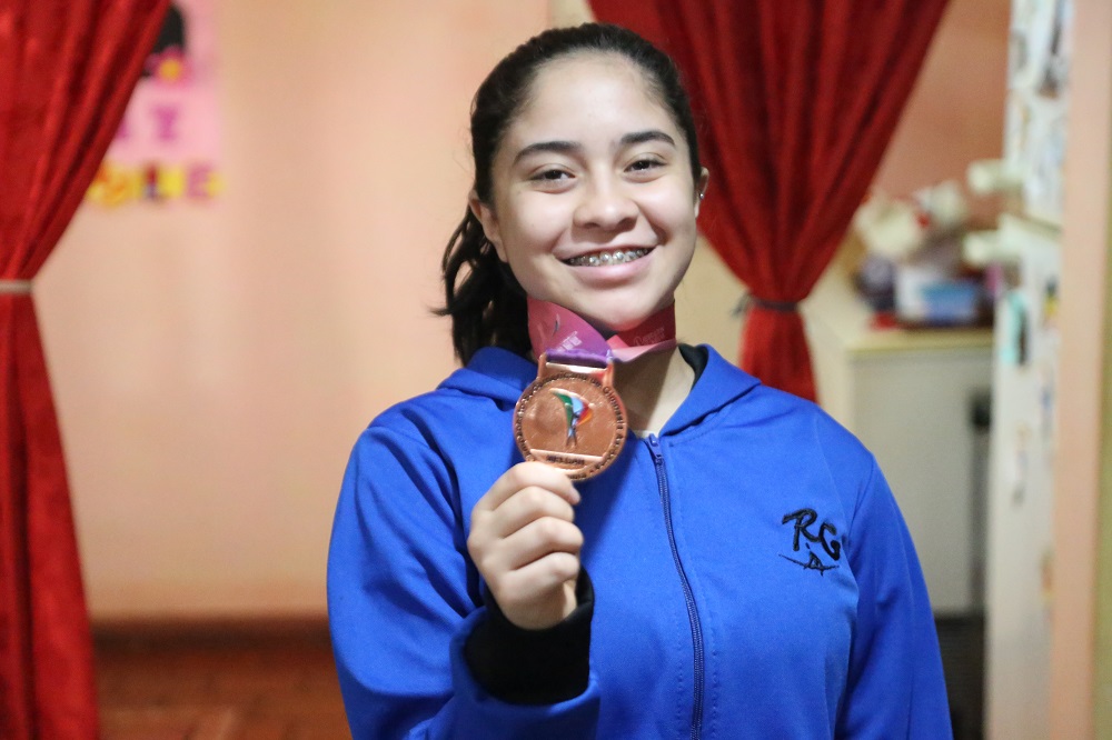 Esta estudiante del tercer año B de la Escuela Normal Superior N°4 incursionó en la gimnasia artística allá por 2016 pero por cuestiones económicas tuvo que optar por la aeróbica en la que, gracias a su esfuerzo y perseverancia, logró importantes resultados.