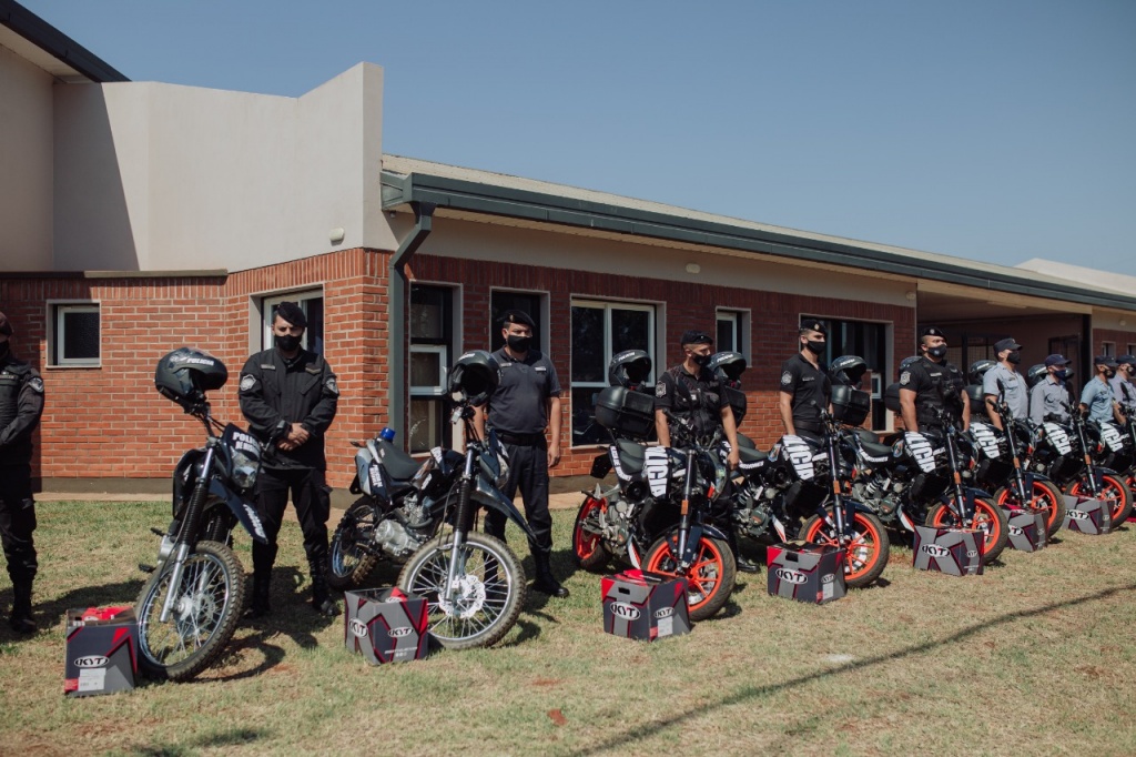 En la oportunidad, el gobierno provincial hizo entrega de 13 motocicletas para la seguridad urbana y rural y equipamiento para poder realizar las tareas, como cámaras de seguridad.